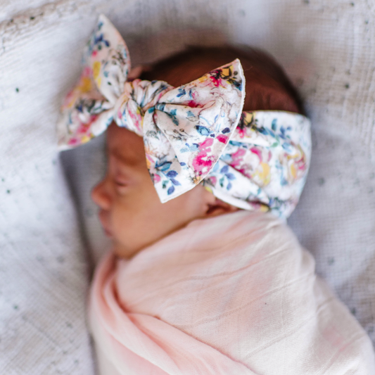 Baby Bling Bows - REVERSE-A-BOW: girl vibes - floral / rose quartz