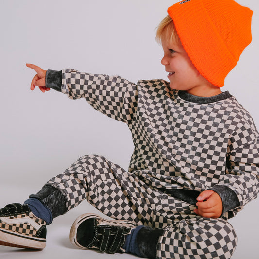RAGS - Drop Shoulder Crewneck - Washed B&W Check