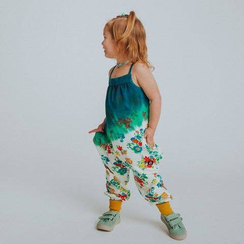 RAGS - Gathered Strappy Tank Rag Romper With Side Pockets- Dip Dye Floral