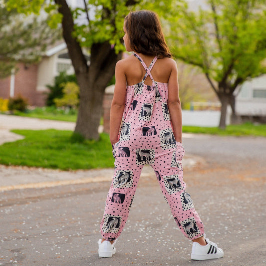 RAGS - Gathered Strappy Tank Rag Romper With Side Pockets - Cheetah pose