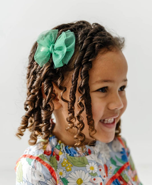 Baby Bling Bows - 2PK TULLE BABY FAB CLIPS: kelly green
