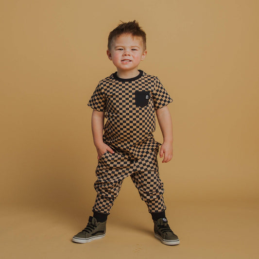 RAGS - Relaxed Fit Joggers - Black & Tan Check