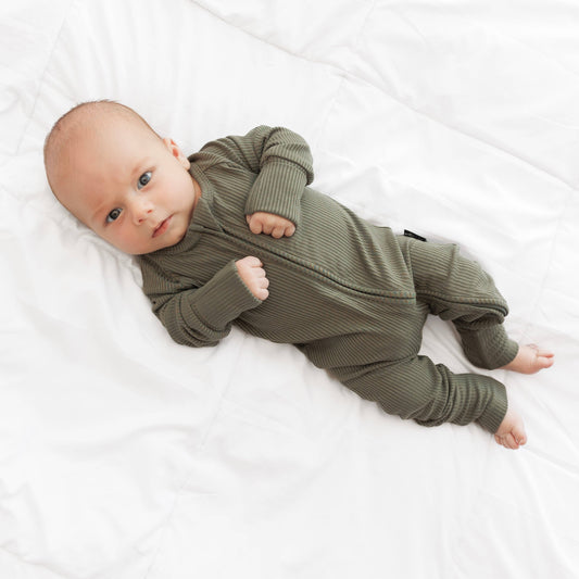 millie + roo - ZIP ROMPER - Moss Ribbed