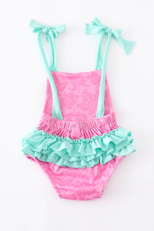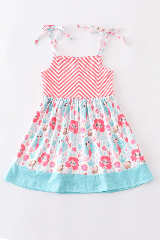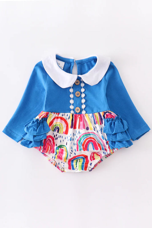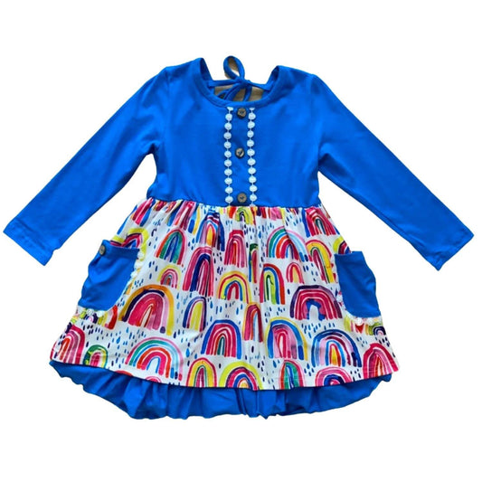 Sweetheart Tie Back Ruffle Dress - Bright Blue and Rainbow