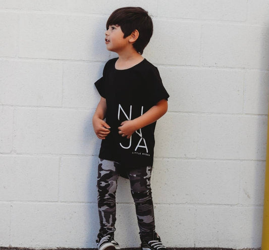 millie + roo - HAREM PANTS- Dusty Black Camo Stretch French Terry