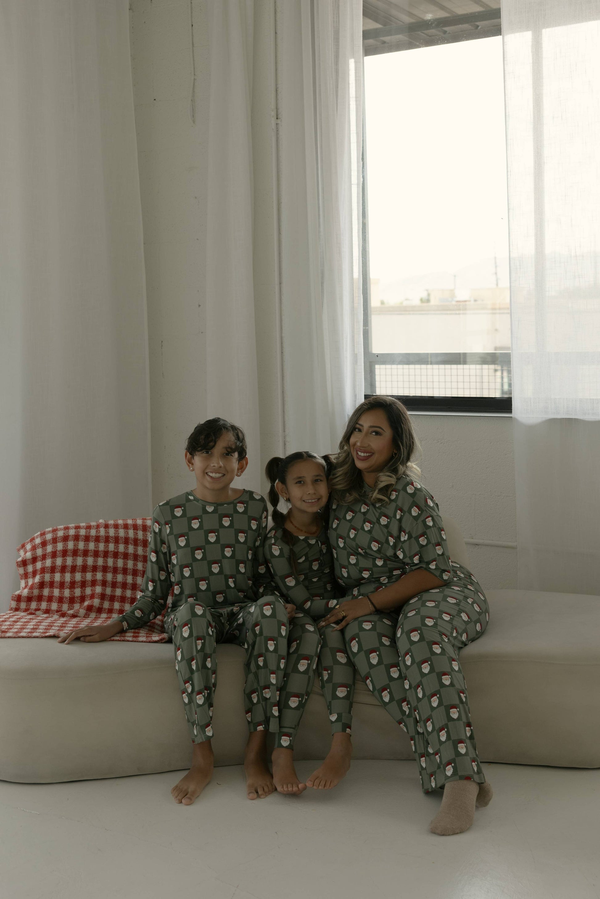 Everyone’s favorite bamboo men’s pajamas, now available in smaller sizes made just for pre-teens! This set includes a long-sleeve top and straight-leg pants for a relaxed, comfortable fit. Perfect for bedtime, lounging, and sleepovers — a go-to set they’ll love to wear. Please note: All holiday items are final sale. Size exchanges may be made within 15 days of delivery, pending availability. Sizes available: 8 Years - 16 Years | Size Chart Print: Santa Checkerboard Material: 95% bamboo viscose / 5% spandex A key benefit of bamboo clothing is that it is naturally hypo-allergenic, gentle on the skin, and highly breathable. It keeps skin cool in summer and warm in winter by wicking away any excess moisture. No need for both summer and a winter wardrobe – with bamboo clothing you will be comfortable year round.